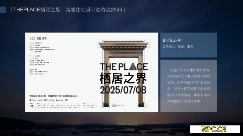 宋真介紹,“THE PLACE 棲居之界:高端住宅設計趨勢展2025”特展由中國建博會(廣州)發起,由展入“宅”、特別邀請萬華投資集團聯合舉辦,由麓湖A8設計中心、萬華集團室內設計中心參與策展,由靈感家擔任傳播統籌。