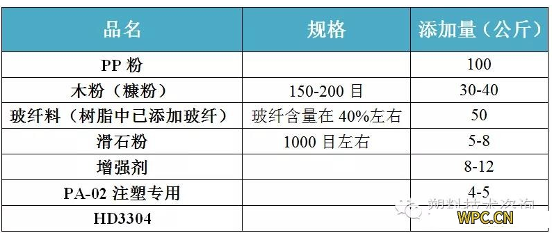 控制好合理水分的纖維和填料 →加入高混機里 →混到100℃ →加入適量的偶聯劑 →混到110~115℃ →關掉馬達,停止時打開混合機大蓋2~3分鐘 →加入PVC和穩定劑 →混到80℃ →加潤滑劑及其他助劑 →到100℃時加入加工助劑,發泡劑 →120~125℃時卸粉 →粉卸完后馬達停止了再打開大蓋,2~3分鐘后再混下一手料(最好混五手料,清理一次混合機) → 粉在冷拌桶里冷卻到40℃ →造粒或加入雙螺桿生產(冷拌桶務必有循環冷卻水)。1、在混料時必須注意觀察溫度和時間,如一般冷鍋混一手料在20-25分鐘左右,熱鍋在12~15分鐘左右(溫度設定125℃左右),如果時間有相差3分鐘或更長,可能是感溫線有問題或溫控不準,或混合機牛角刀磨損嚴重,會影響發泡倍率的穩定和產品顏色。3、主機電流的大小和穩定性。如主機電流波動較大說明滑劑、加工助劑、纖維與PVC各組分之間分散不是很均勻。4、烘干機的溫度一般設定在60-80℃之間,且經常保持在桶的容積的80%左右,這樣有利于生產和顏色的穩定,提高制品的表觀質量。5、單螺桿擠出機主要靠摩擦輸送物料,混煉效果差,木粉在機筒中停留時間長,易燒焦。因此,在PVC/塑木復合材料擠出中受到較大的限制。為了提高PVC/塑木的混合效果,用于PVC/塑木加工的單螺桿應該設混煉區,或者先造粒,然后用粒料擠出成型,但這個過程消耗了助劑,降低了PVC性能。